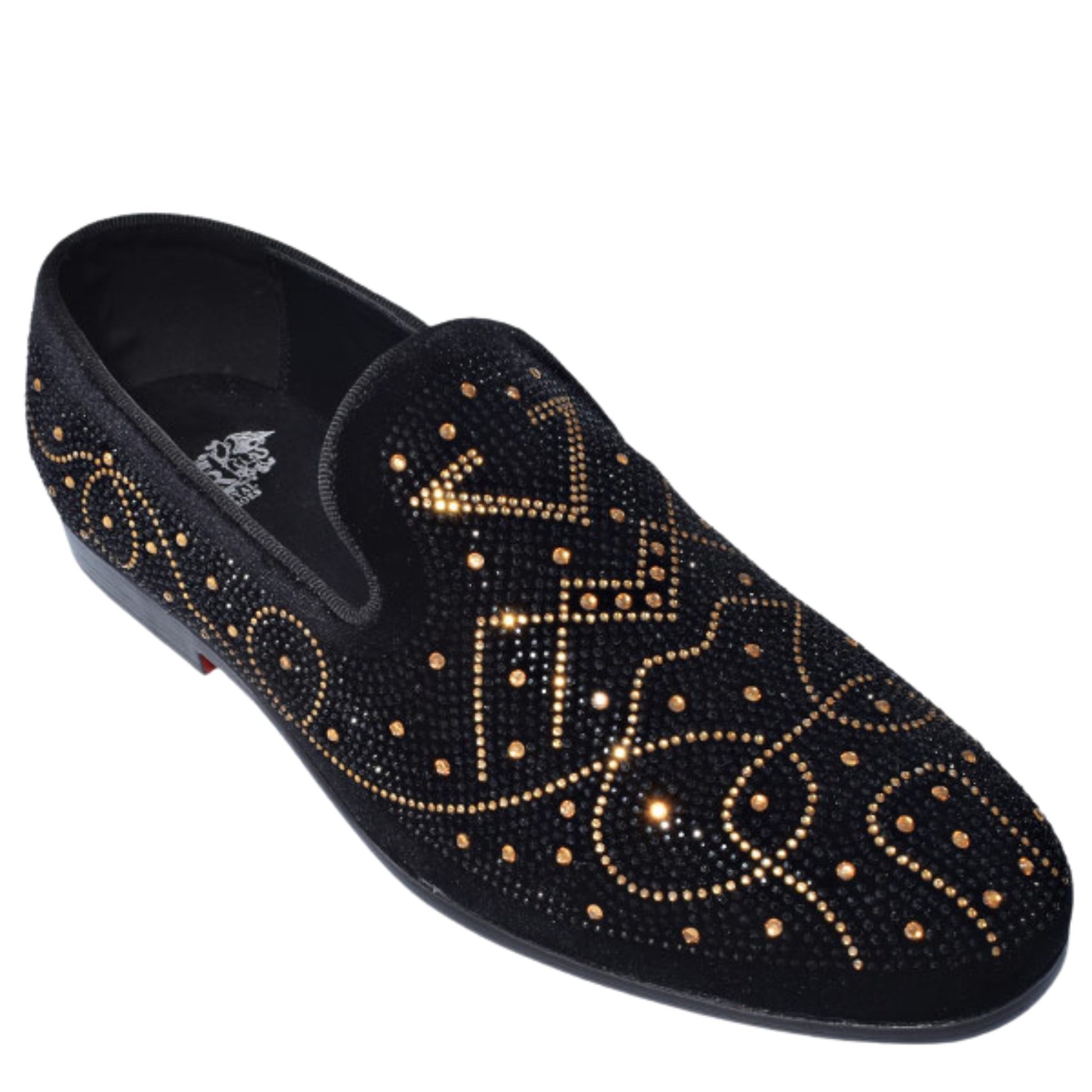 Black & Gold Rhinestone Prom Loafers | Luxury Slip-On Dress Shoe