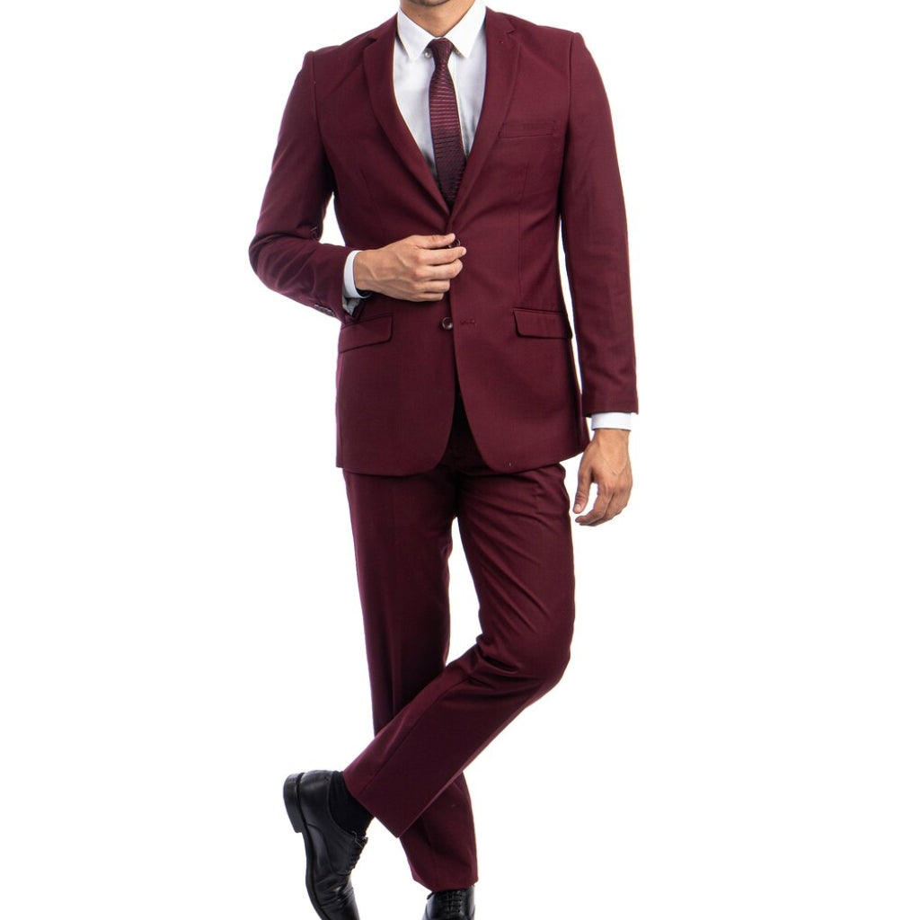 💡 Style Tip: Pair this burgundy suit with a crisp white dress shirt, a black satin bowtie, and polished dress shoesfor the ultimate formal look.