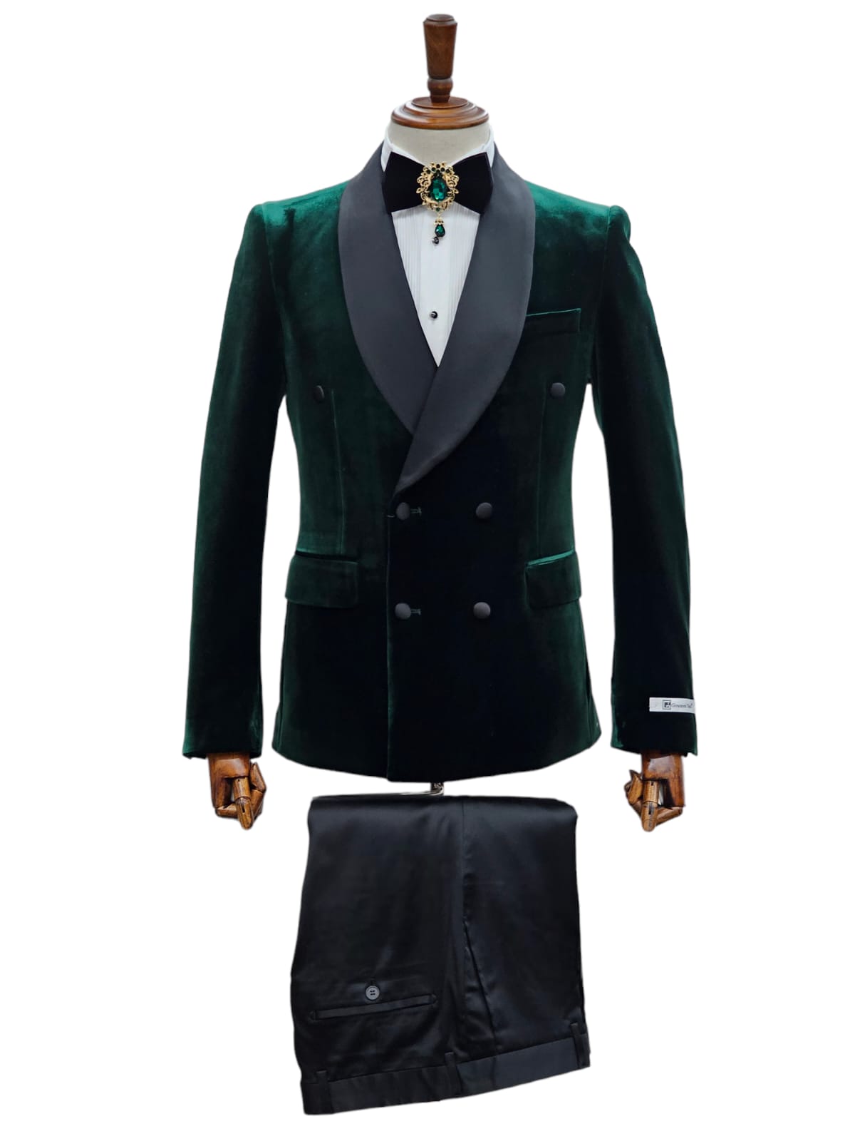 Green Velvet Double Breasted Tuxedo Black Slim Fit