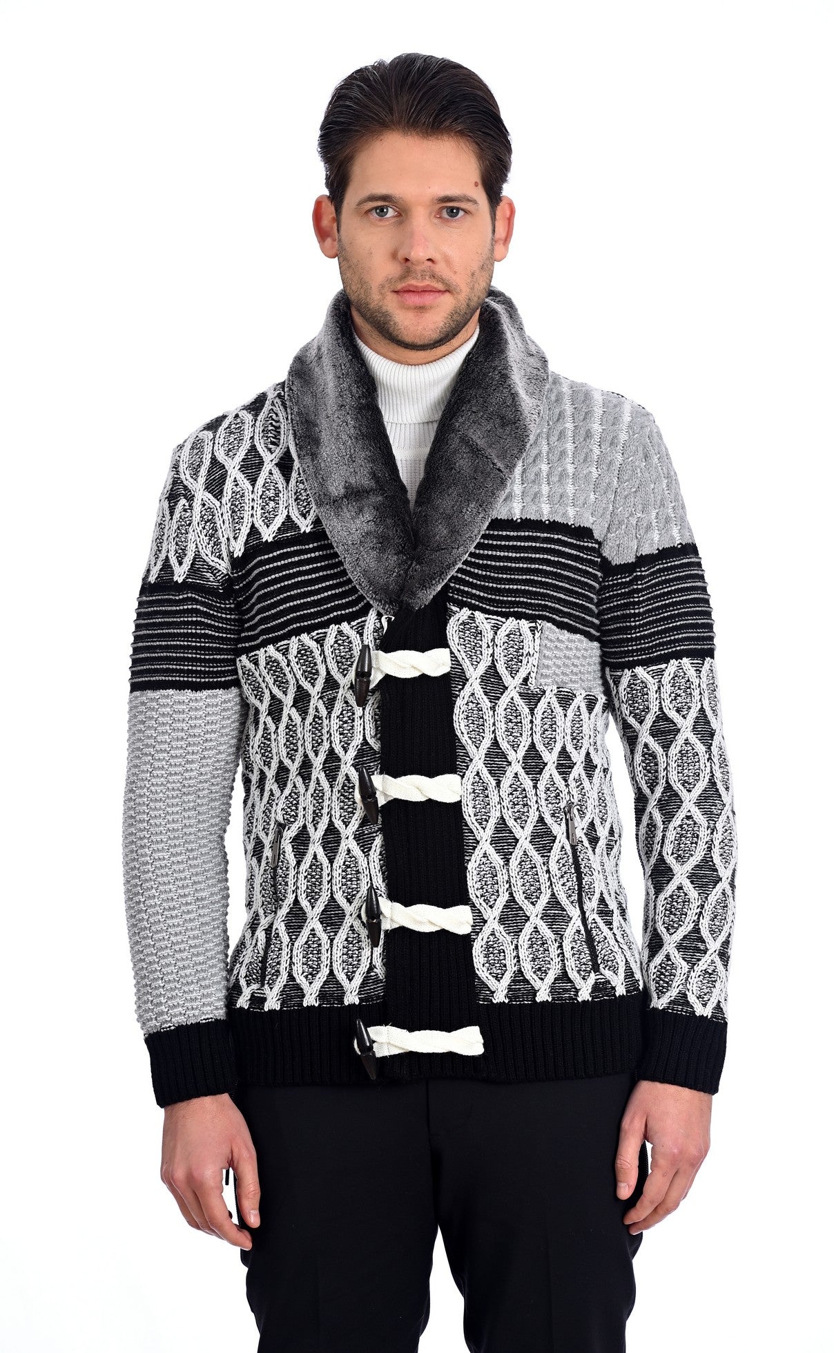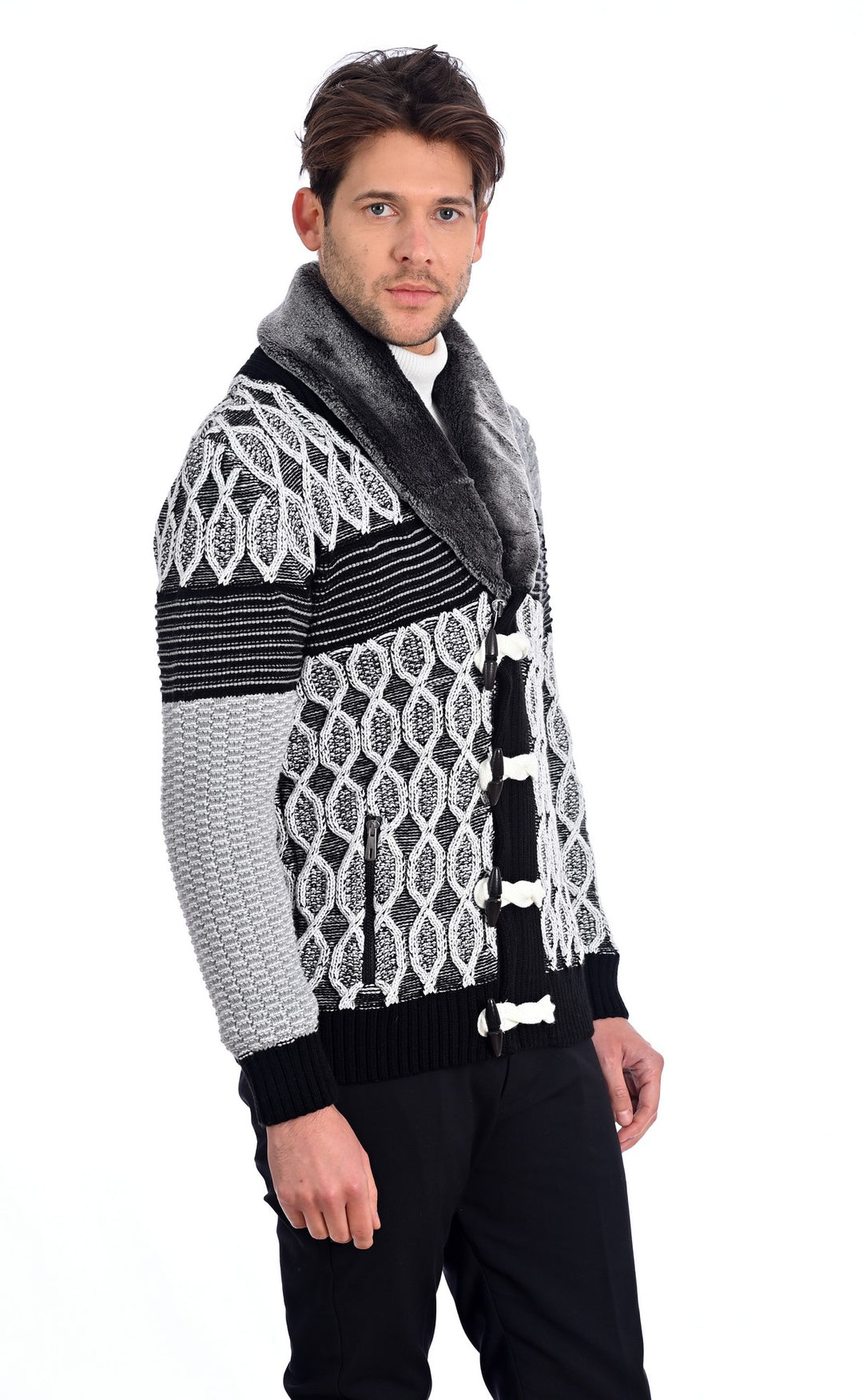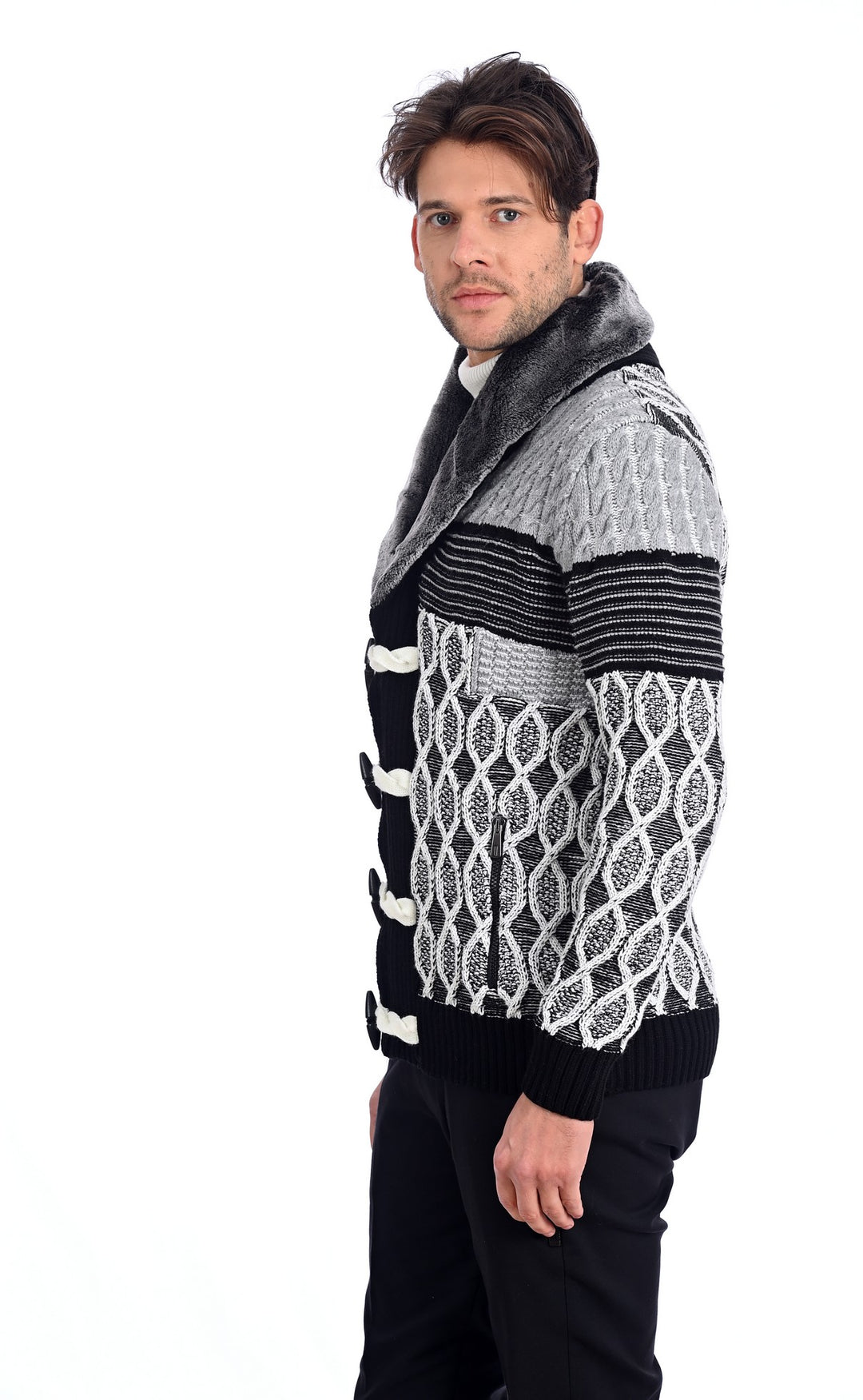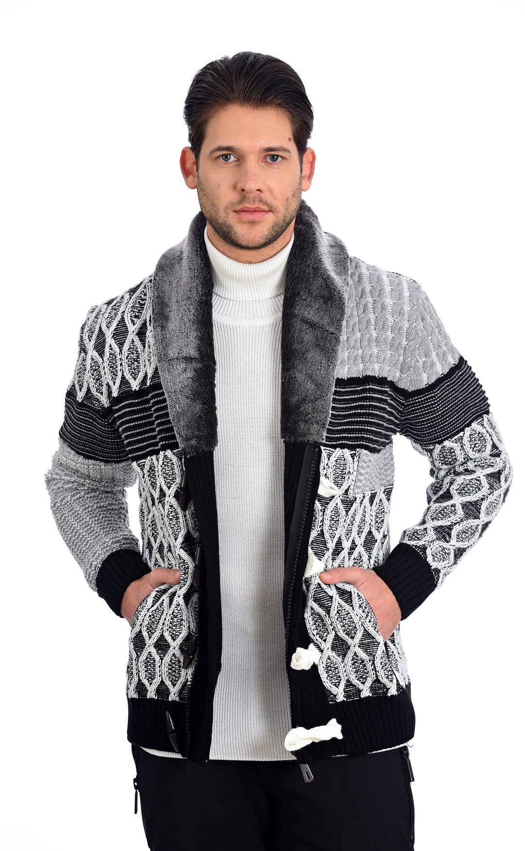Beautiful and Stylish Grey Black Fur Heavy Sweater with Detachable Fur