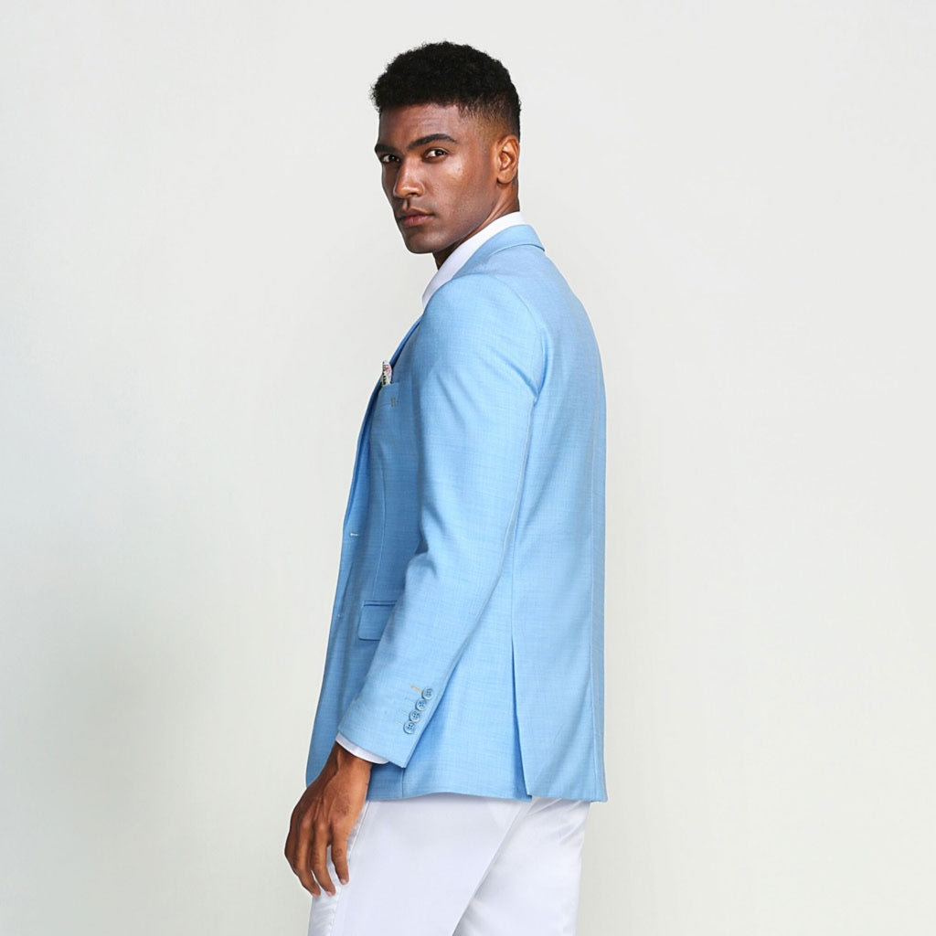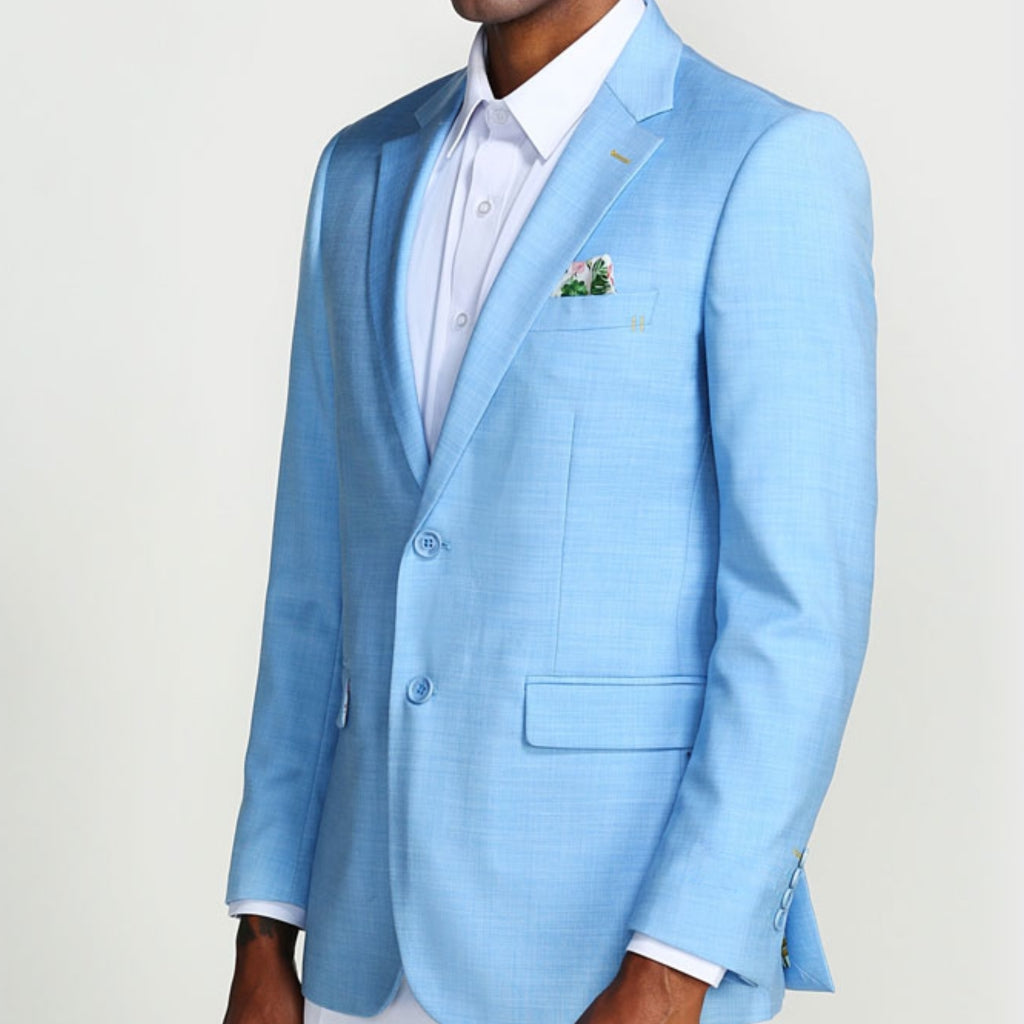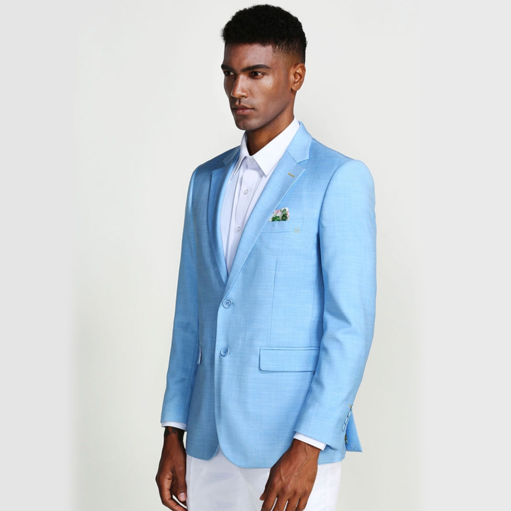 - Men's light blue casual blazers two buttons with a notch lapel.