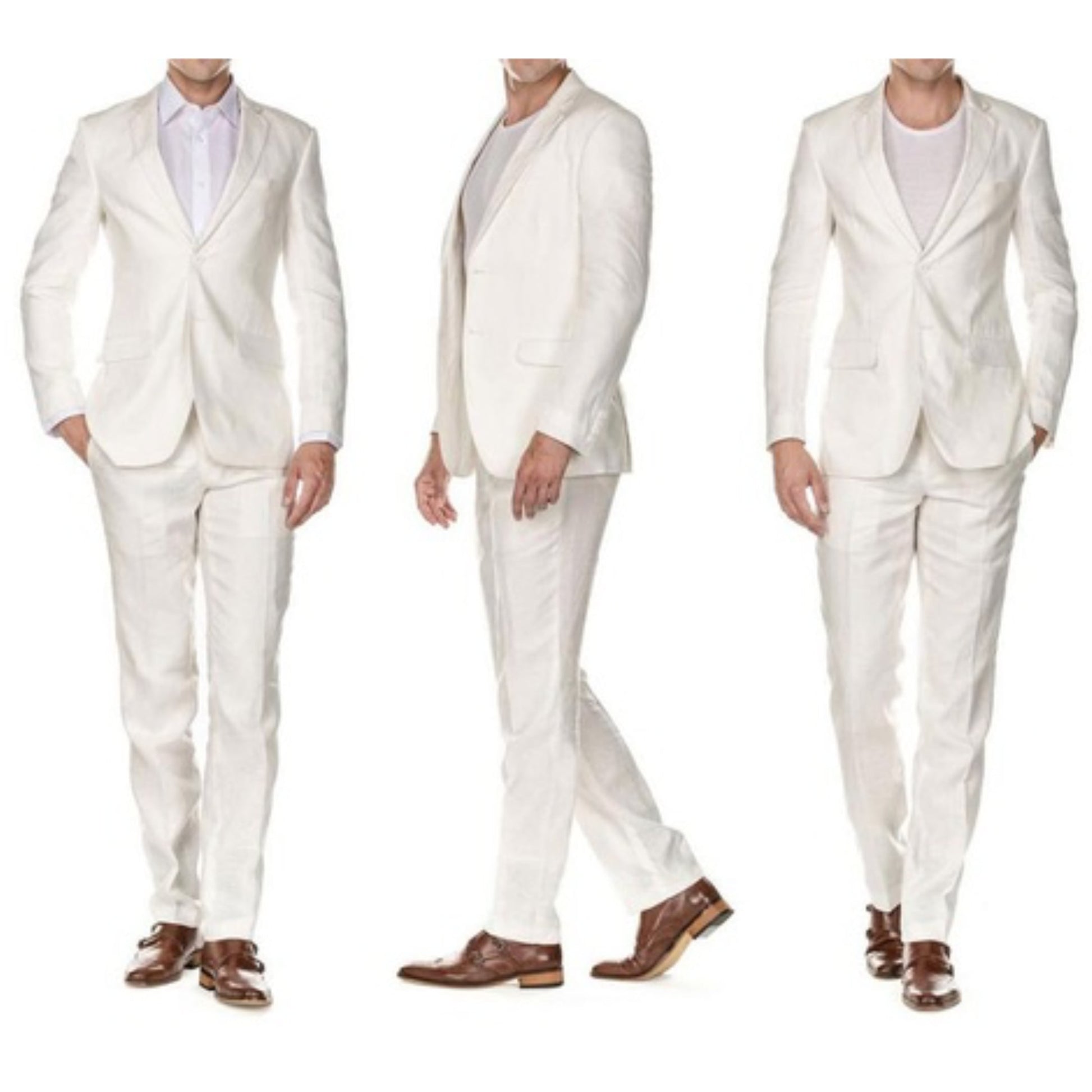 - Men's Linen Two Piece Suit two buttons with a notch lapel.