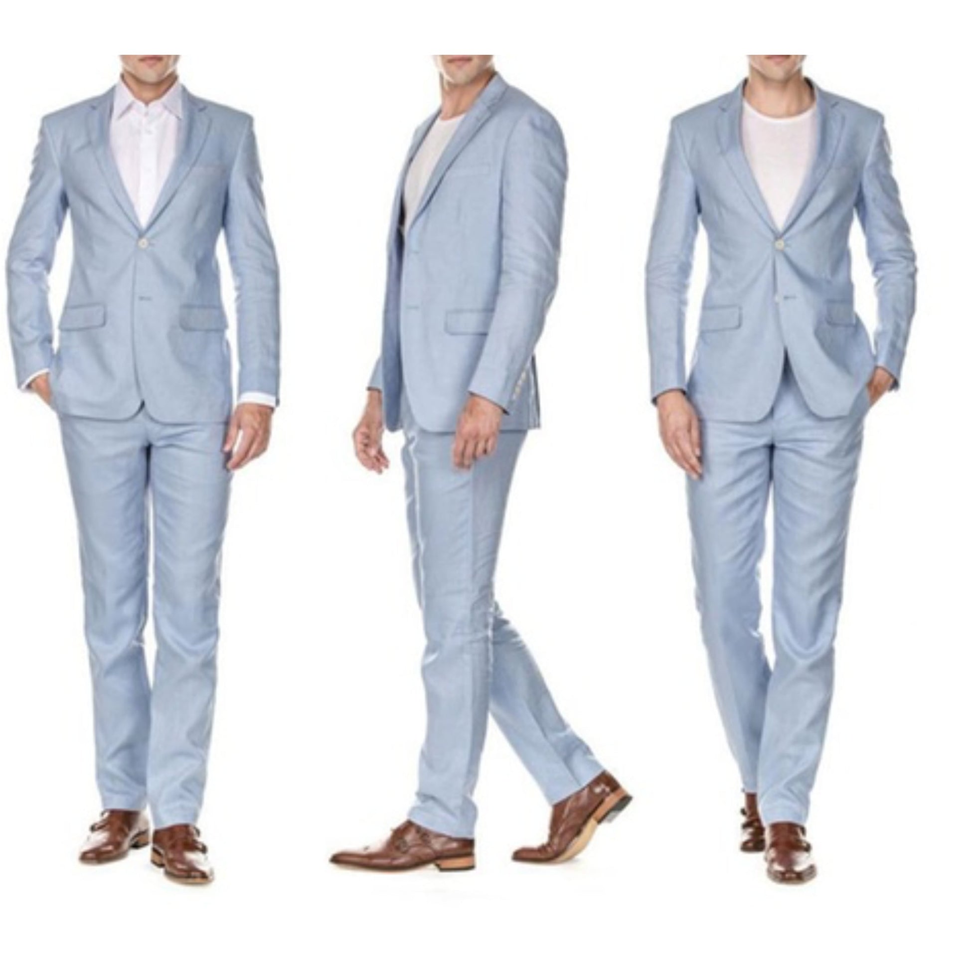 Linen Light Blue Two Piece Suit