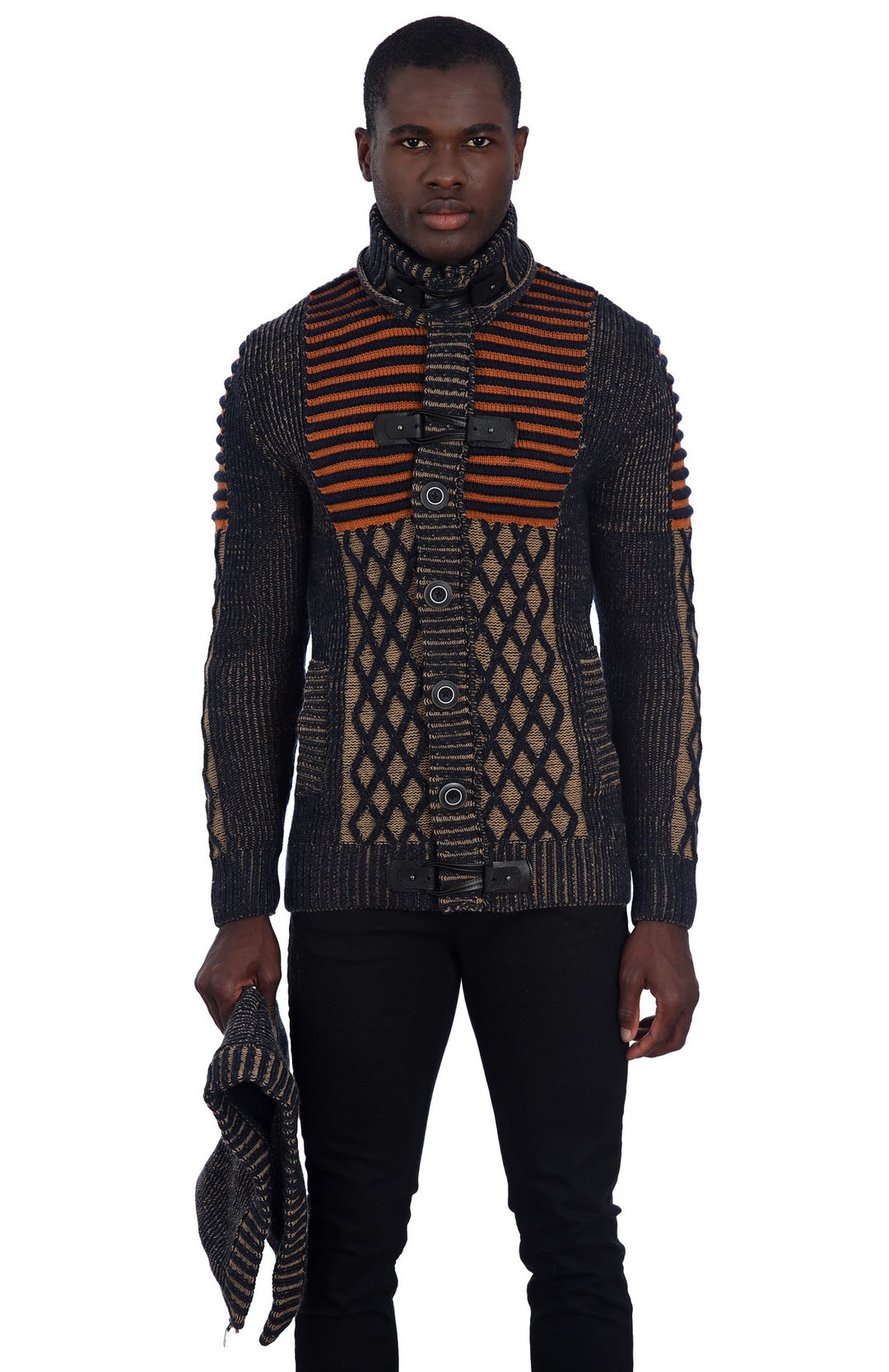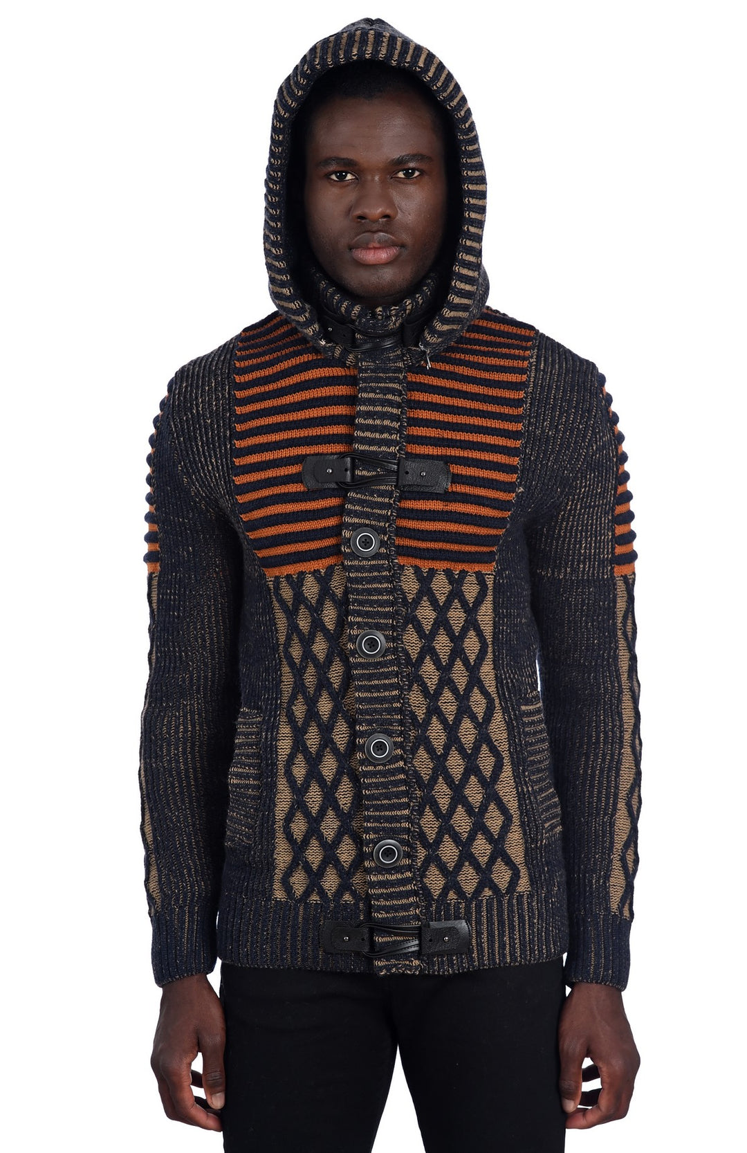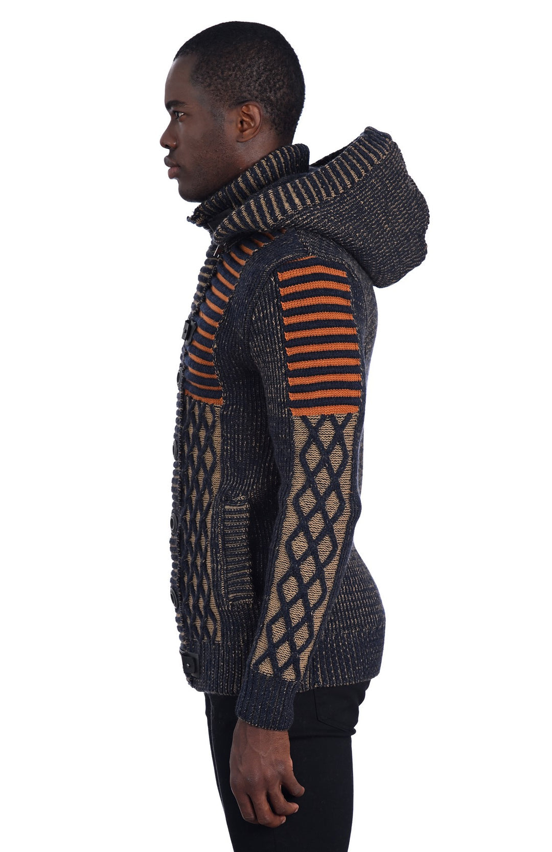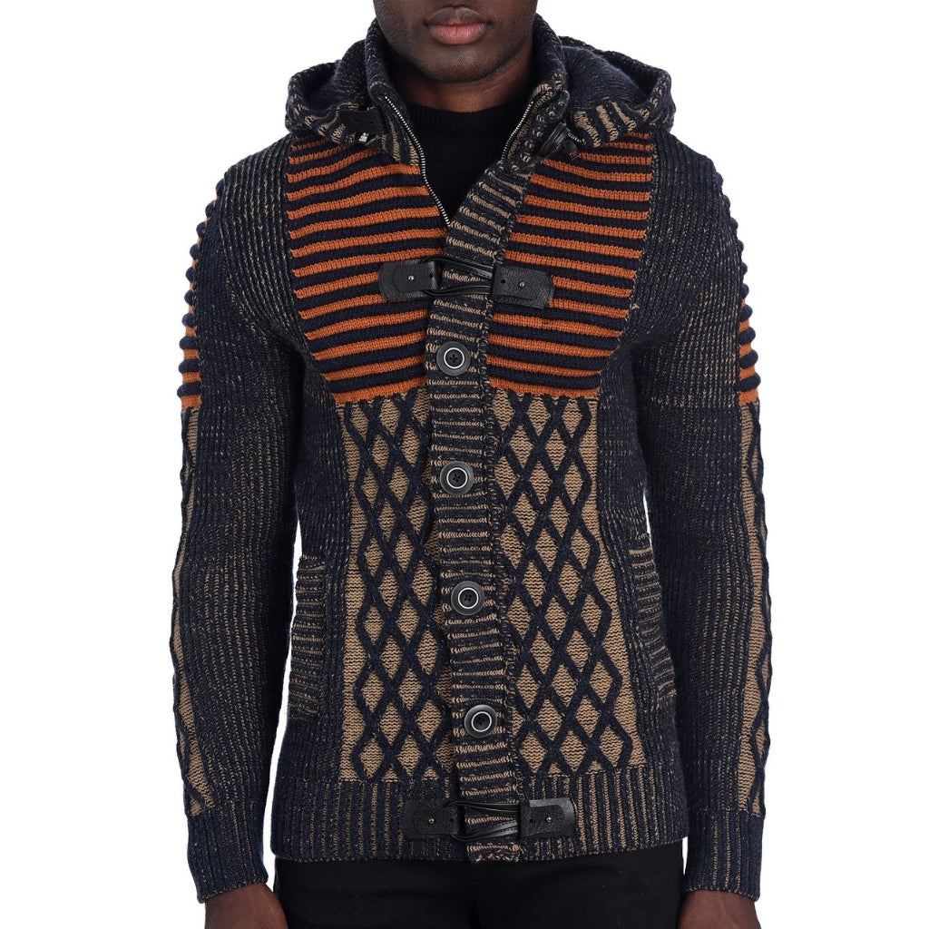 Beautiful and Stylish Navy Orange Heavy Sweater with Detachable Hood