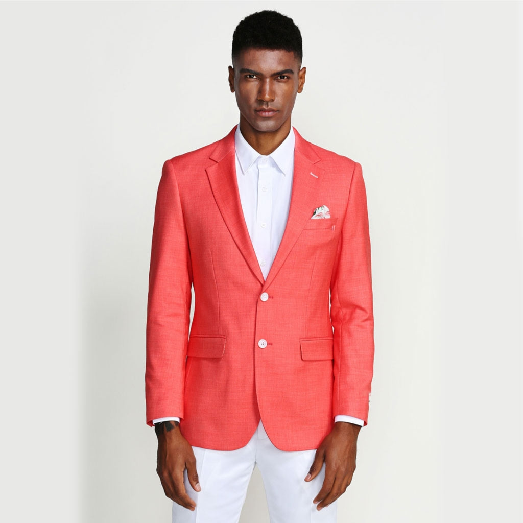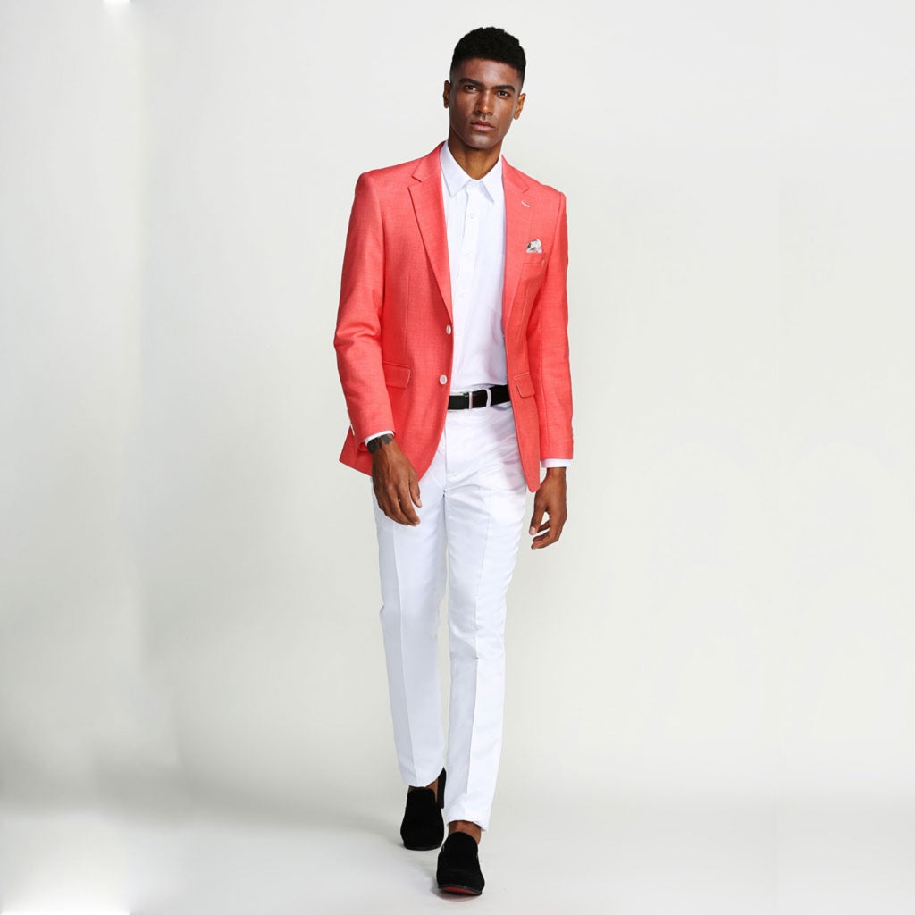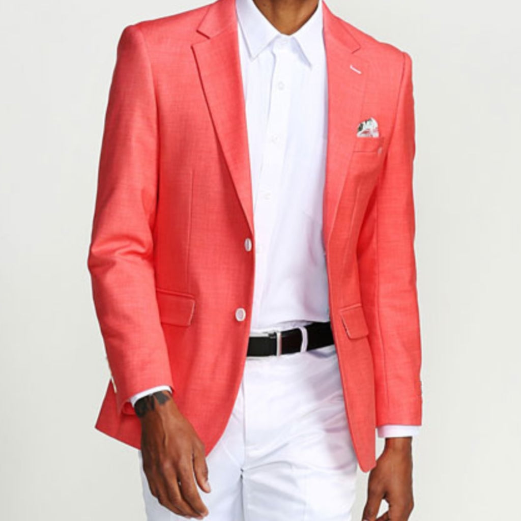 - Men's salmon casual blazers two buttons with a notch lapel.