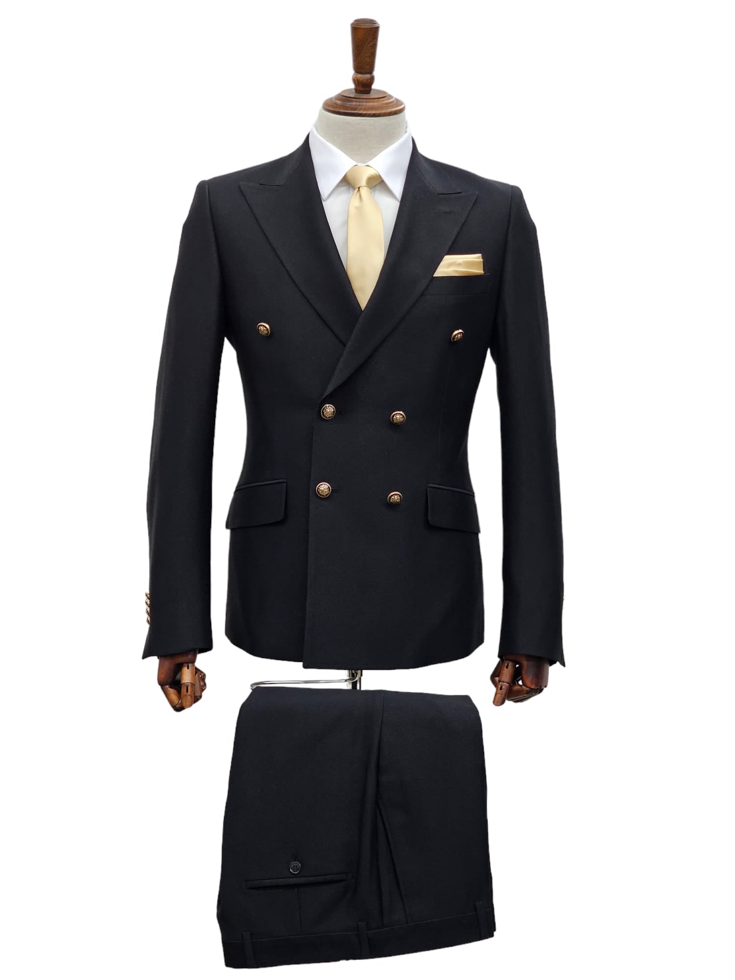 Elevate your formal wardrobe with this Men's Slim Fit Double-Breasted Black Suit, a classic choice that combines timeless style with a modern edge. Featuring a sophisticated 6-button, double-breasted design and peak lapels, this suit is perfect for business settings, upscale events, and formal occasions. The suit’s slim fit creates a tailored silhouette, providing a sharp, flattering look that exudes confidence and elegance. Made from a durable synthetic blend, it offers comfort and longevity, making it a versatile addition to any wardrobe.